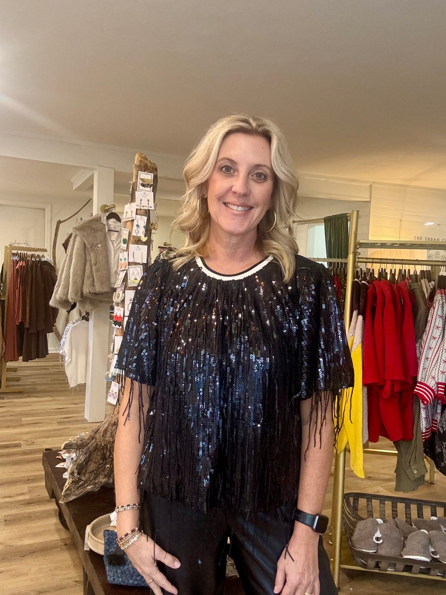 The most beautiful top! Perfect to dress up or keep casual with jeans. I’m in a medium for reference. Love the sporty trim around the neck.
