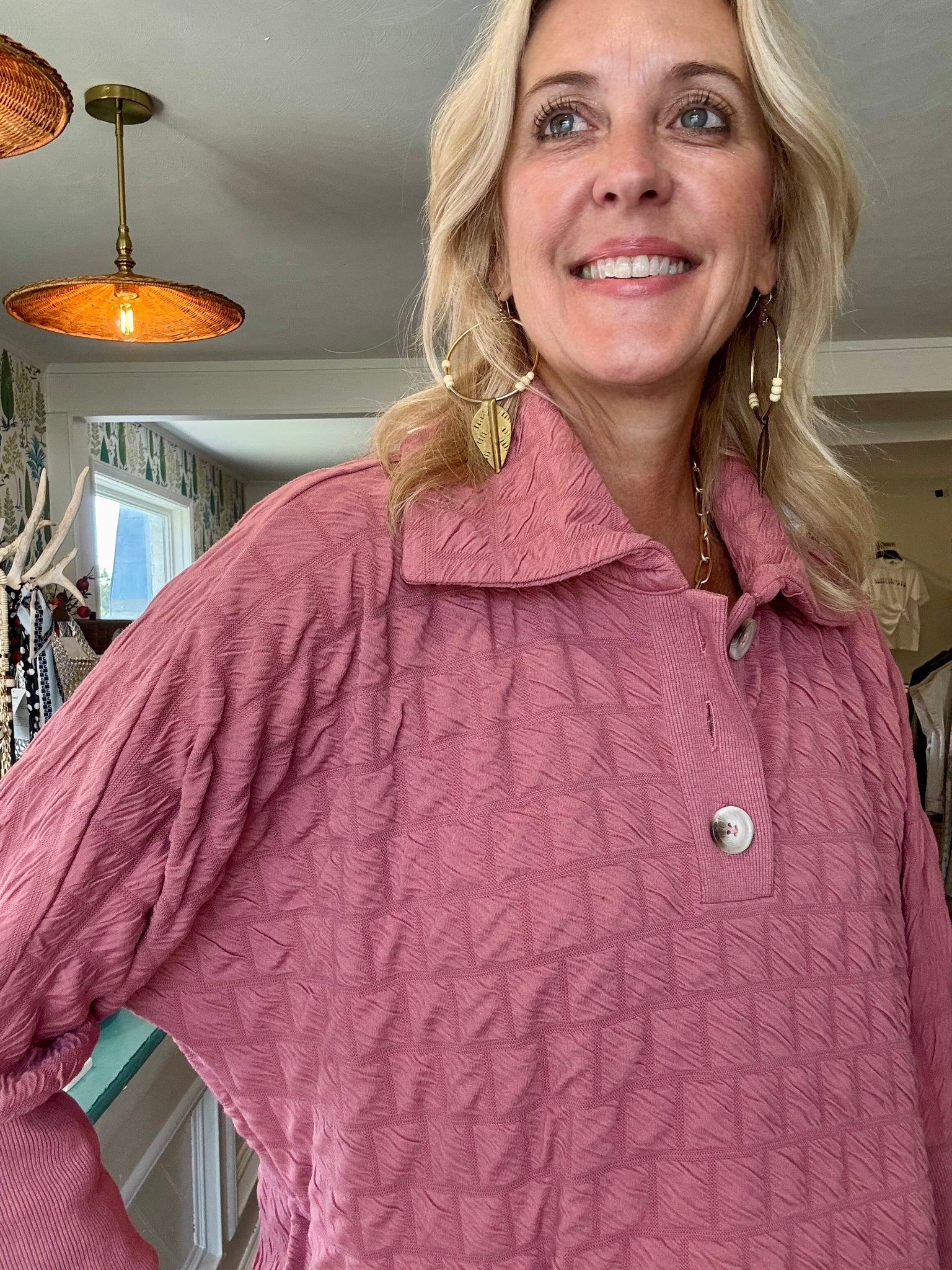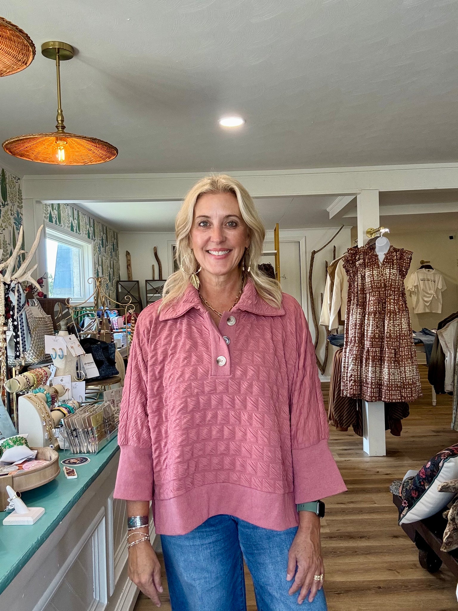 The cutest yet casual top! Love the color for fall. The collar and button detail make it pop. Plus, the pattern. Super soft. I’m in a small. A little oversized.