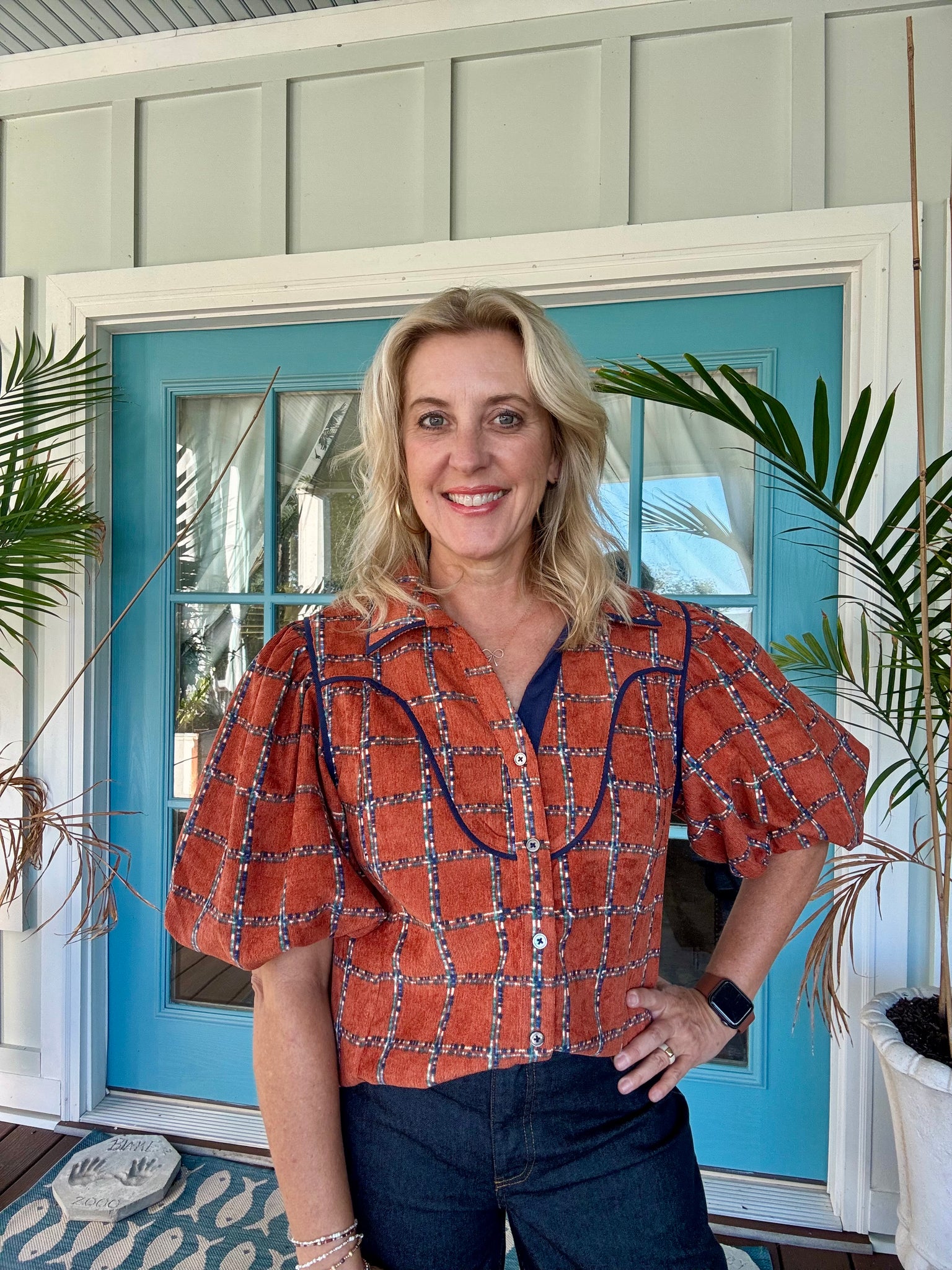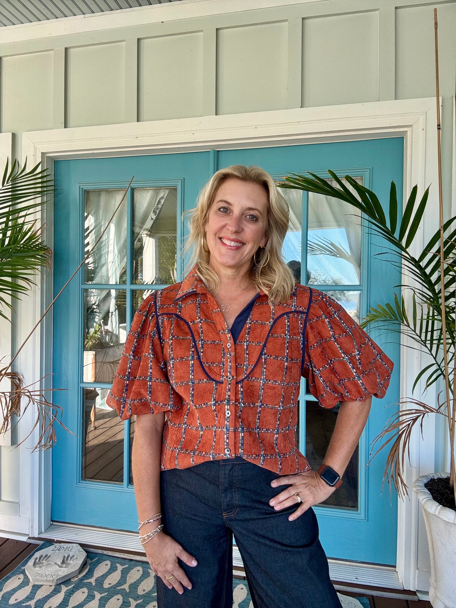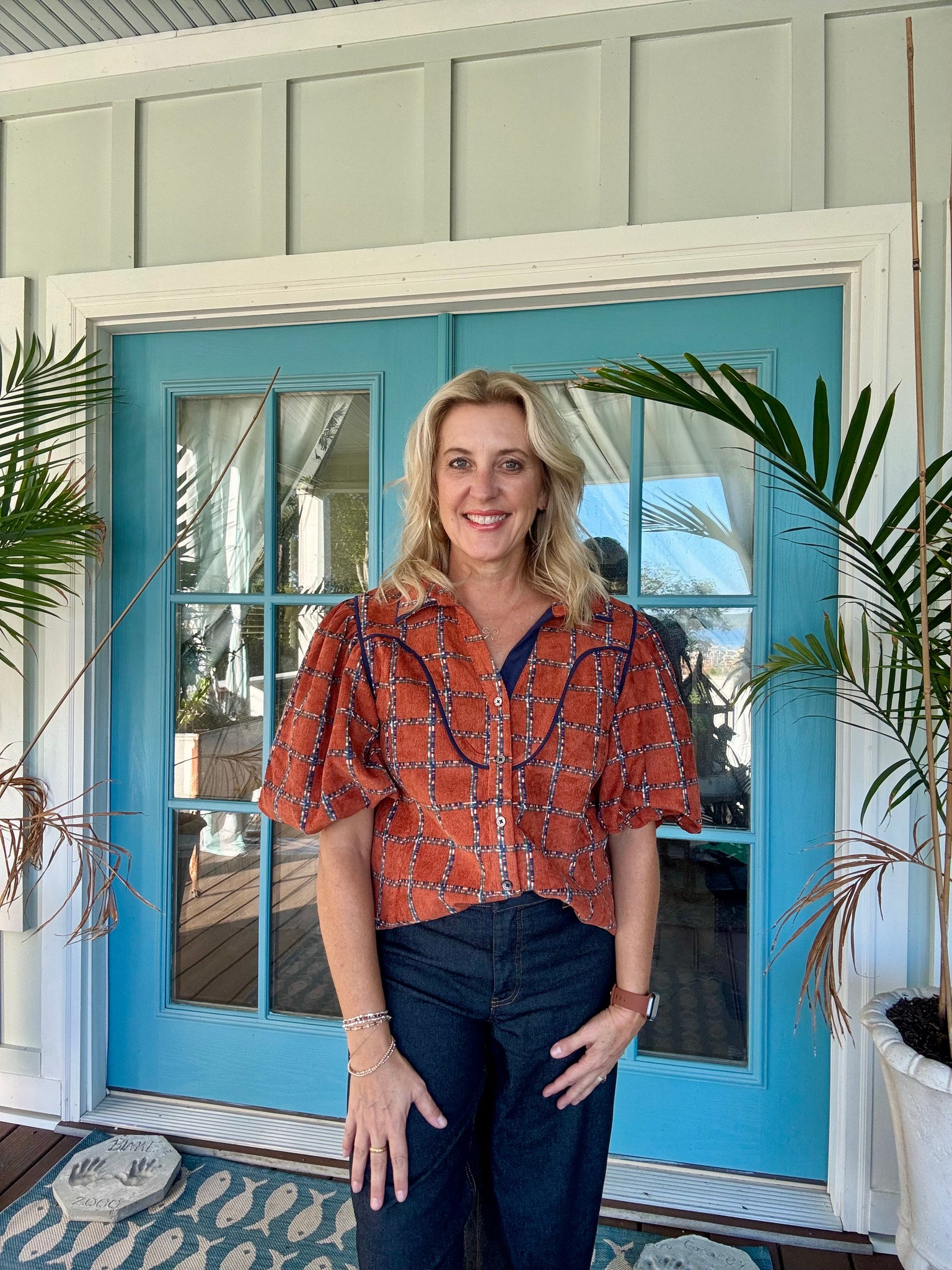 Got to be the cutest fall top! I’m in a medium but could do the small. Lightweight and the prettiest details.
