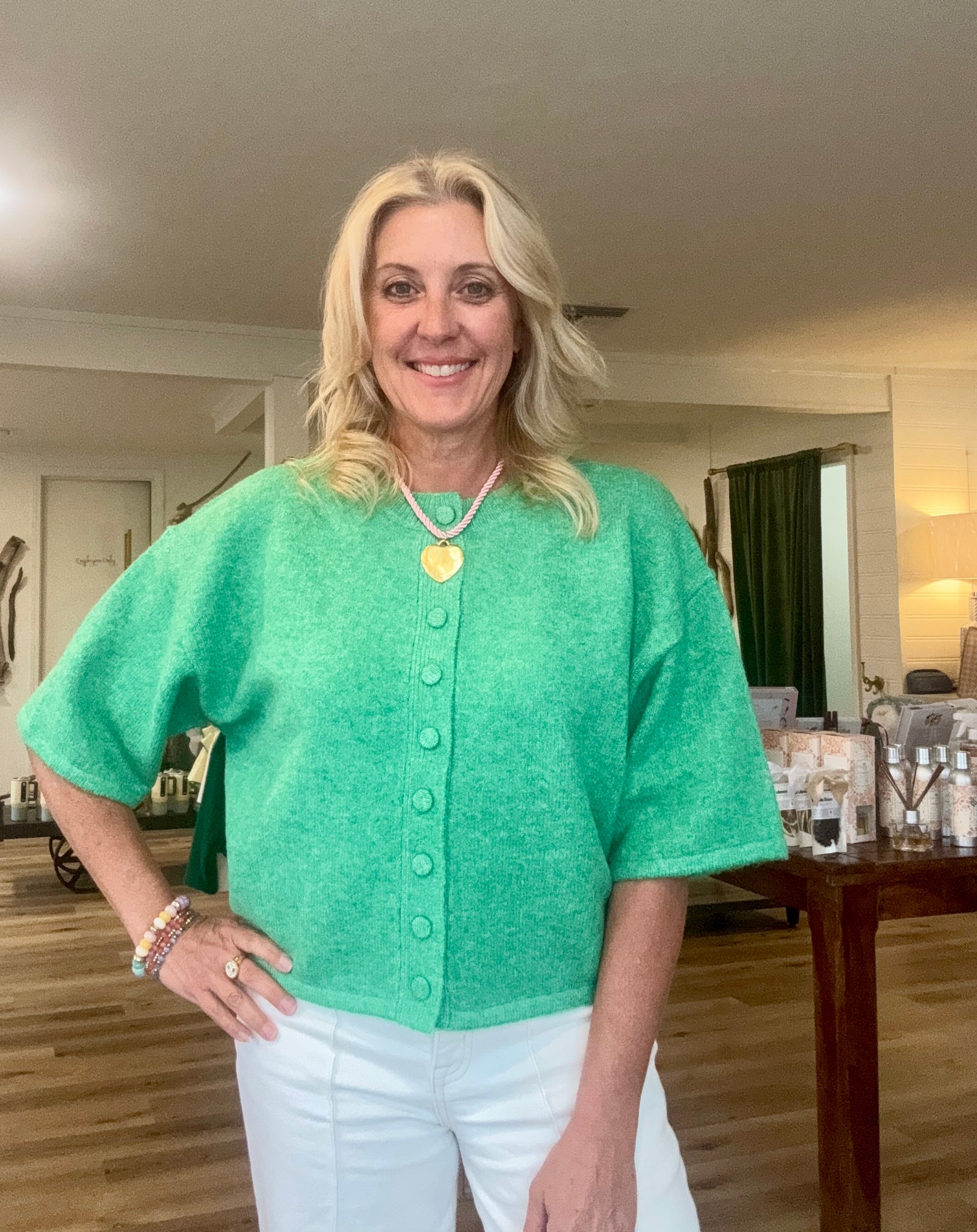 So comfy and the most beautiful green. Love the button detail. I’m in a S/M for reference.