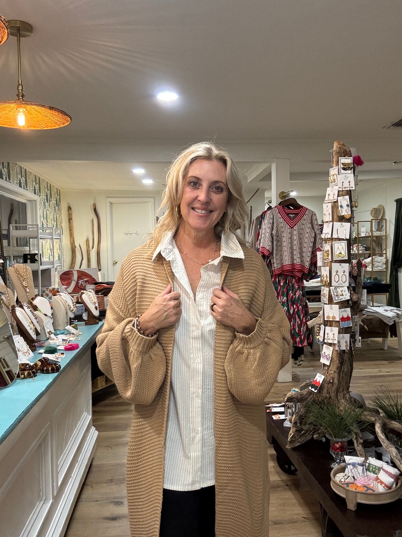 So soft and comfy for layering. I’m in a small. Acrylic.